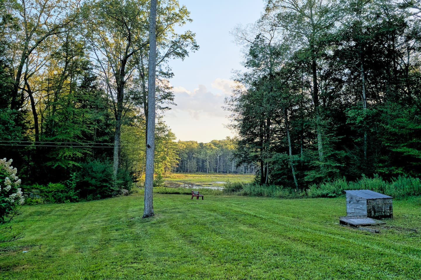 Tucked deep in the woods of Cuddebackville, NY, this rustic retreat exists for one purpose: to bring you back to yourself. No noise, no rush — just the soft sound of wind through the trees, the glassy stillness of a private lake just steps from your door, and the kind of quiet you didn't realize you'd been craving.